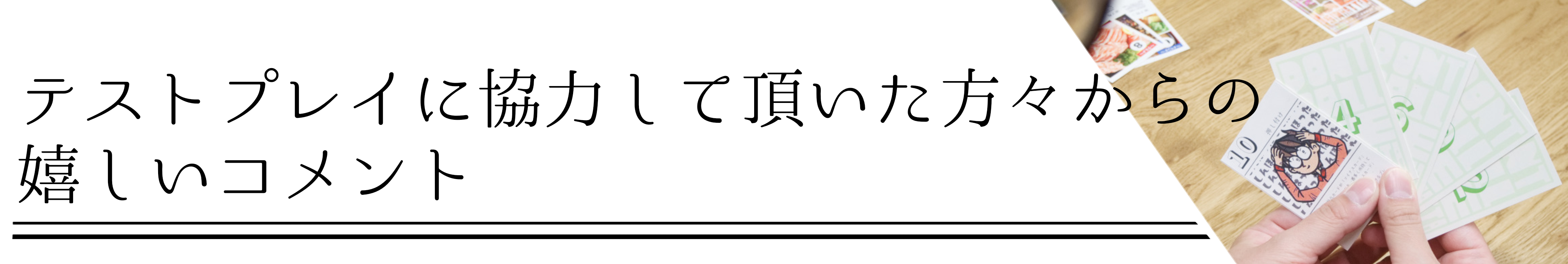 そして、上記のゲーム内容で今年の4月にテストプレイを実施した際に・・・参加者のみなさんからカードゲームの内容や企画への感想を頂きました☆