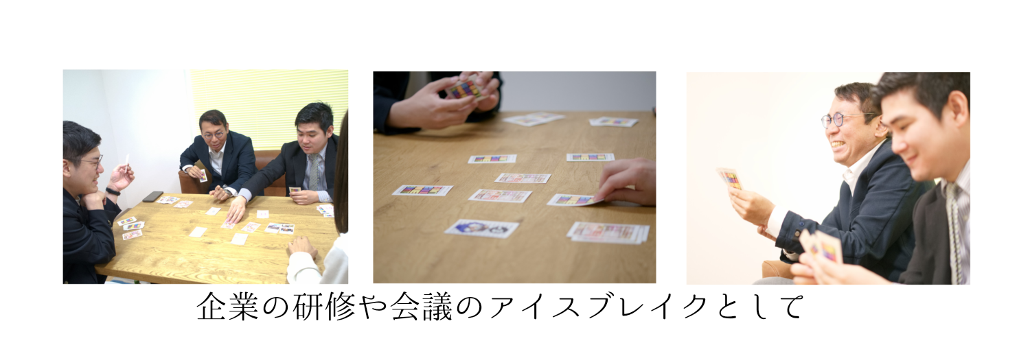 「アイスブレイク」時にカードゲームを活用することで、参加者の緊張をほぐしたり、参加者の関係を向上させたりするなどの効果が期待され、ビジネスシーンでの大切なコミュニケーションツールとしても、カードゲームは重宝されています。(最近では、アイスブレイクに特化した「ビジネス系ボードゲーム」も開発されているくらいです・・!)