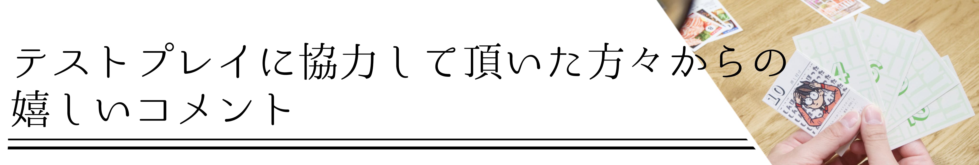 そして、上記のゲーム内容で今年の4月にテストプレイを実施した際に・・・参加者のみなさんからカードゲームの内容や企画への感想を頂きました☆