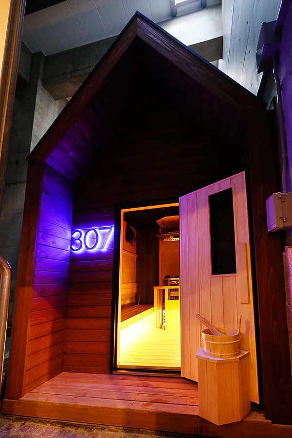 霞サウナは、女性エリアに設置したミストサウナで、フィンランドの伝統的な建物を再現した可愛いらしい初心者向けのサウナになっています。
