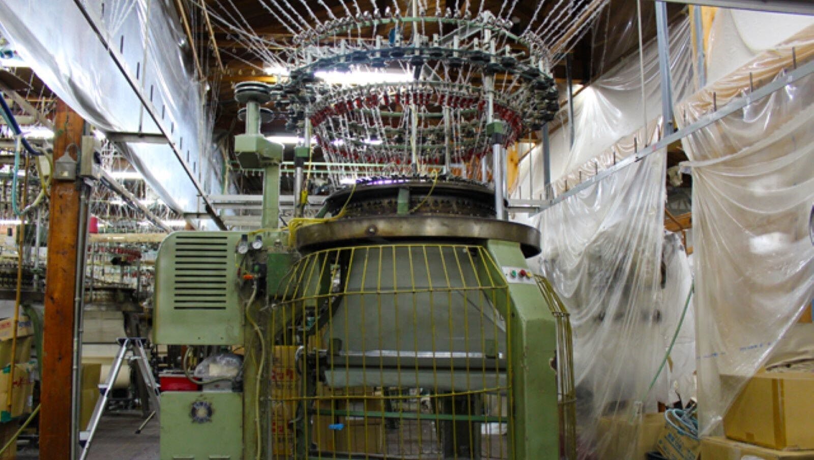 【編立工場風景】当社で設計した糸を投入してニット生地を編みます