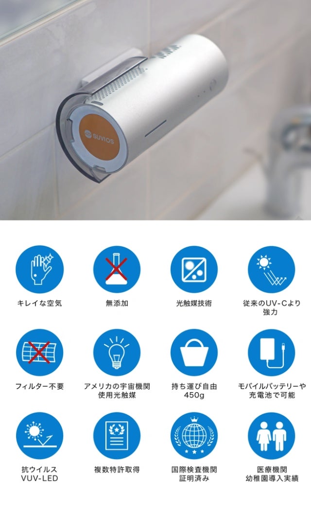 また、コンパクトながら広い面積をカバーできるので、ご家庭以外にも、人の多い飲食店やオフィス、クリニックの受付など、様々な場所に対応できます。