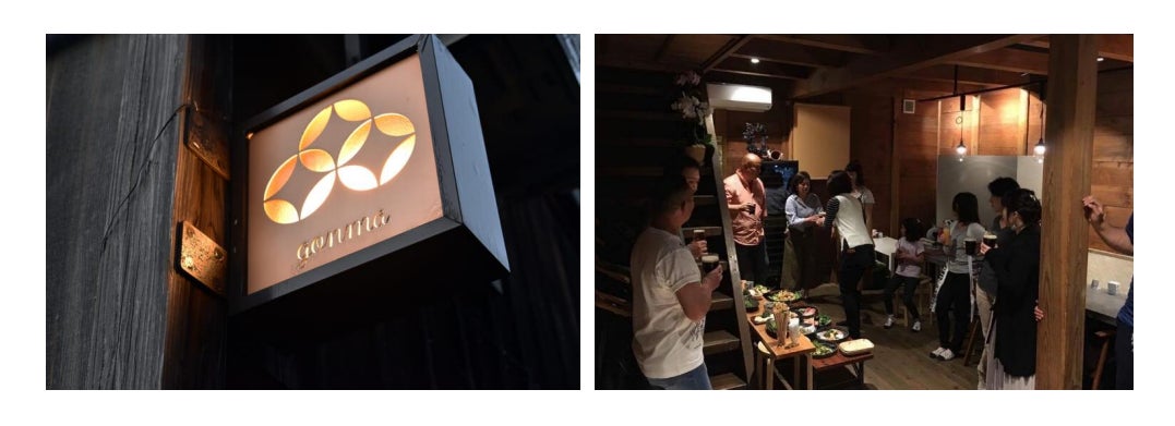 gonma(ゴンマ)は実家の屋号でマークは家紋。地元の方や外国人旅行者も訪れ賑やか。