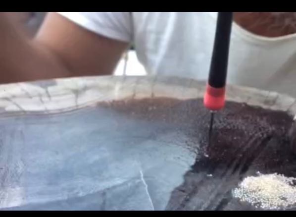 砂ケシを埋めて行きます。その板を水に沈め