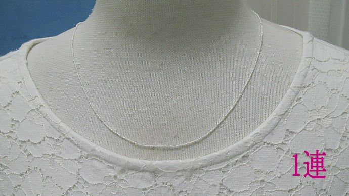 このように細いネックレスですが、糸は国産の専用の