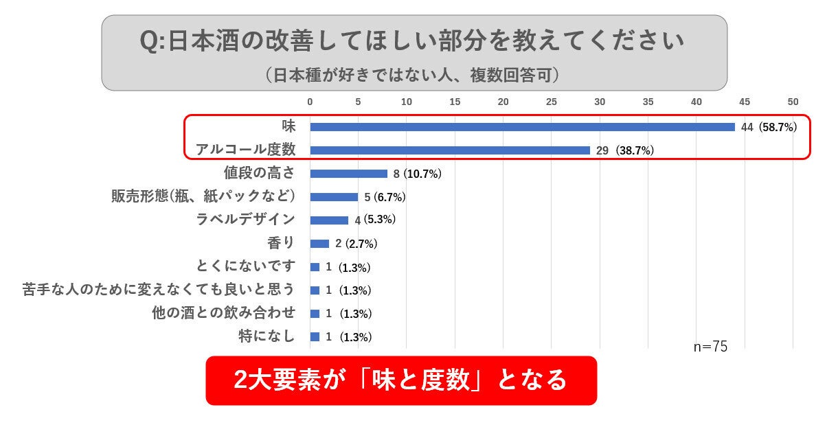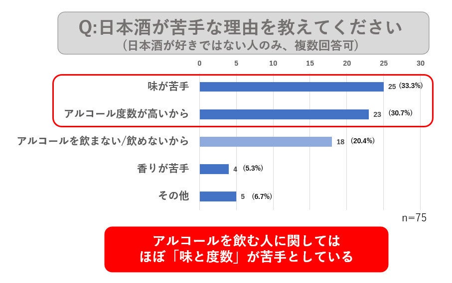 これらの回答により、「日本酒が好きではない」理由がイメージできてきました!
