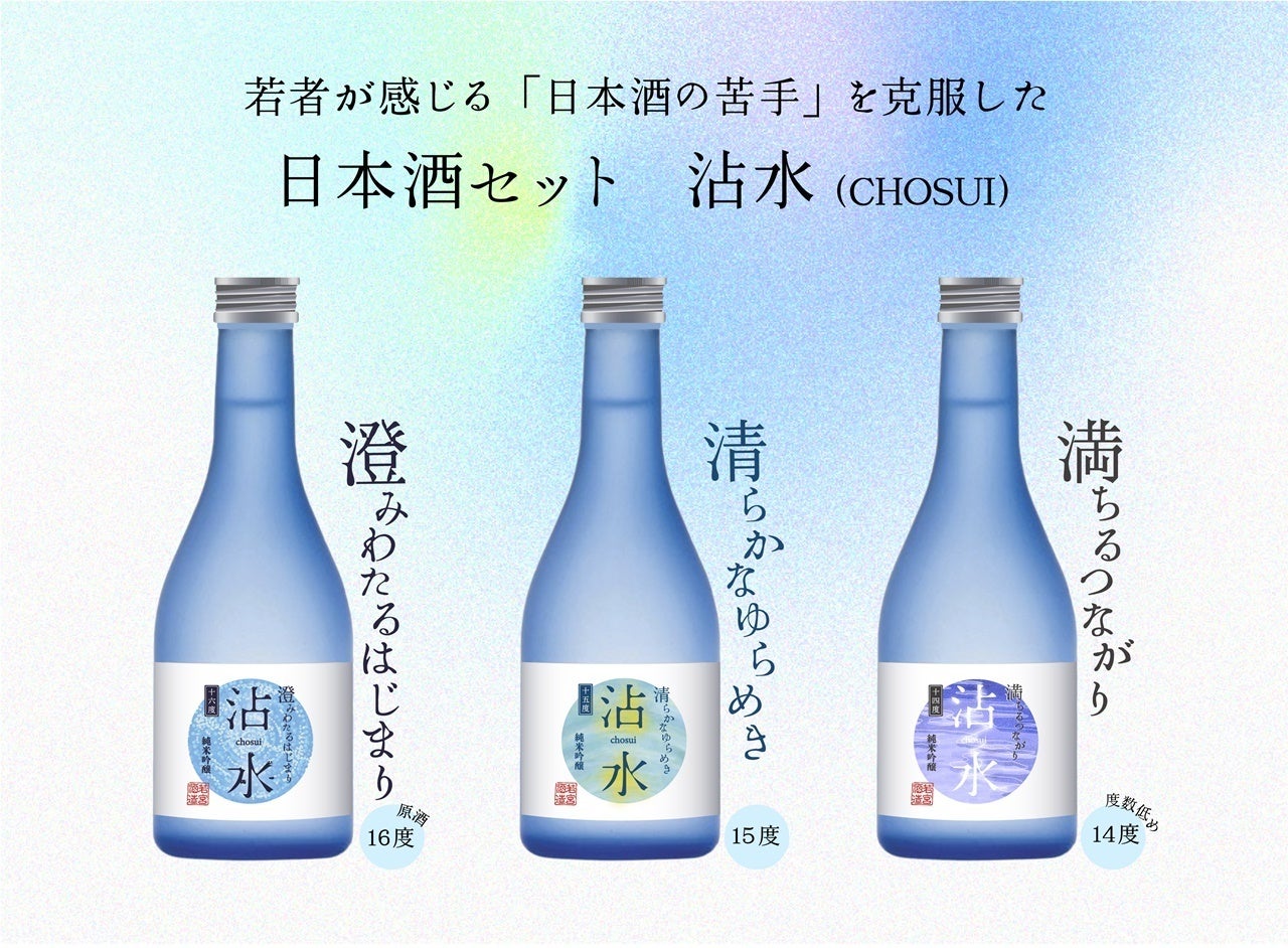 日本酒を初めて飲むきっかけとして、親しい人からの勧めが圧倒的に多いことから、今回の日本酒セット『沾水(CHOSUI)』は「親しい人と楽しむ日本酒セット」として、「親しい人に勧めてもらって飲む」という楽しみ方を想定しています。そのため、爽やかな飲みやすい日本酒をセットにすることで、このセットを飲めば間違い無いと思ってもらえるような内容になっています。日本酒未経験者に対して、美味しい日本酒を知る家族や仲間に勧めてもらうことで、安心して様々な飲み方で日本酒の美味しさを感じてもらいたいと考えています。
