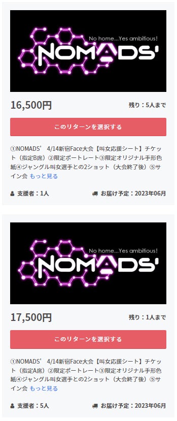 ちなみに本日時点(3月15日 16:00)で、この大会の当日チケットがリターン品となっているリターンもありますので、ぜひご検討ください。