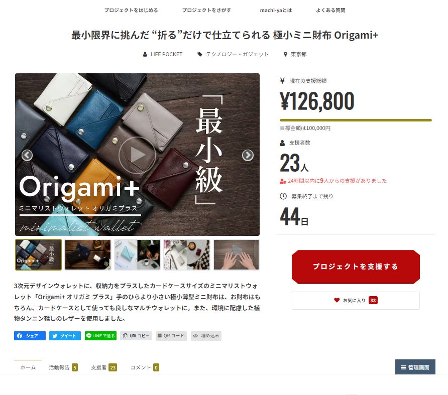 このたびは【極小ミニ財布】折って作るミニマリストウォレット 「オリガミプラス Origami+」のプロジェクトをご支援いただき有難うございます。