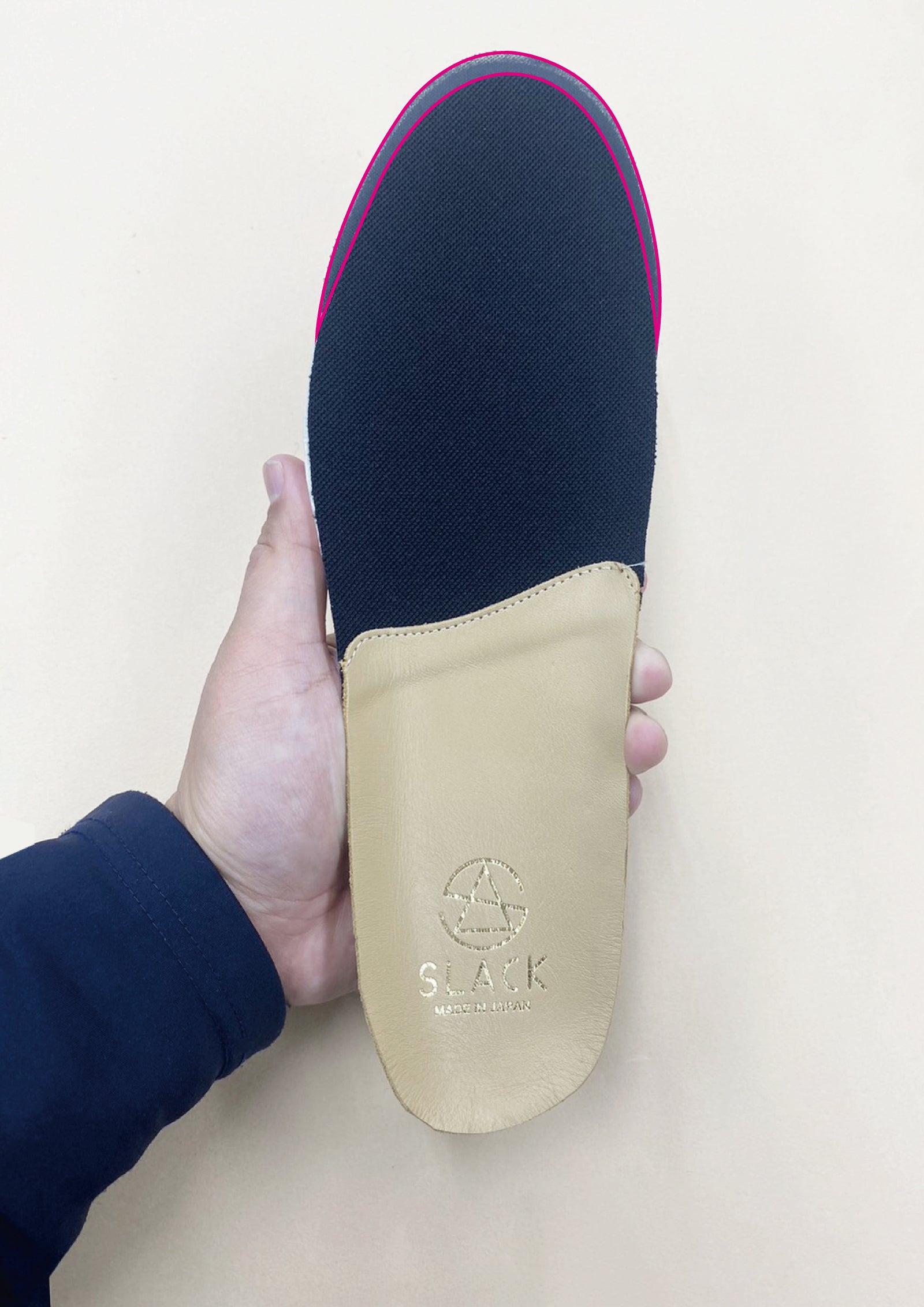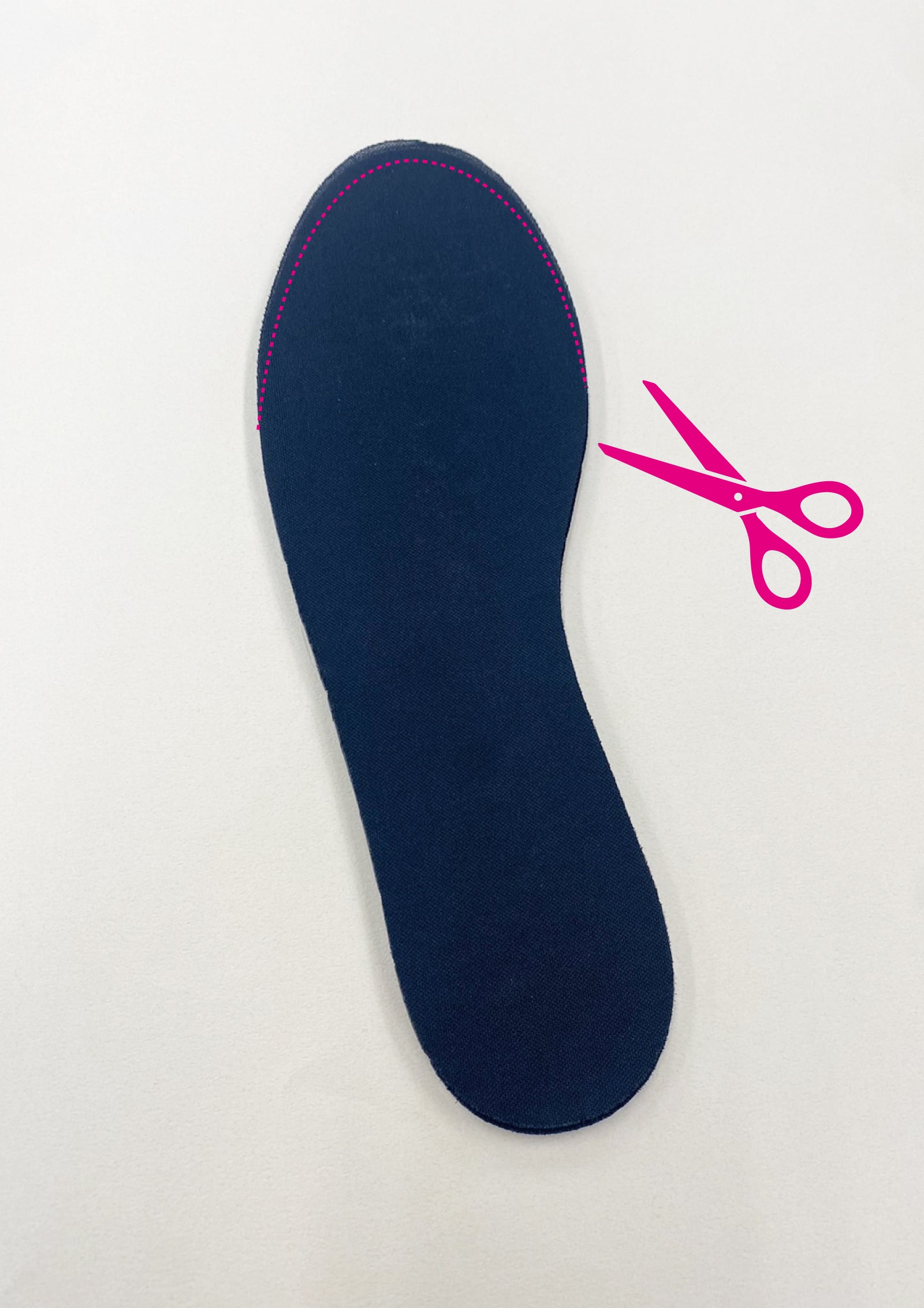⑥カットし終わりましたらまずダイソーのインソールを敷きます。その上からKLAVE JPのインソールを重ねて入れてください。下地にダイソーのインソールを入れるのでロゴマークなども消えず、靴内部の空間もインソール1枚分増えることで緩さがなくなり、フィット感が良くなります。