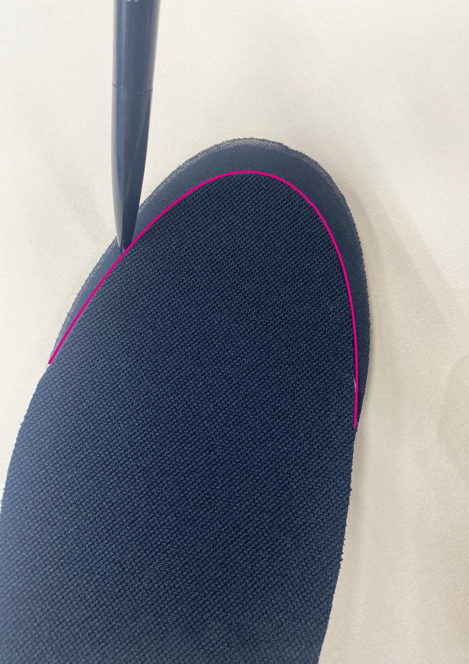 ダイソーのインソールを後ろにして重ねると面積の余り(ピンクの部分)が出ます。