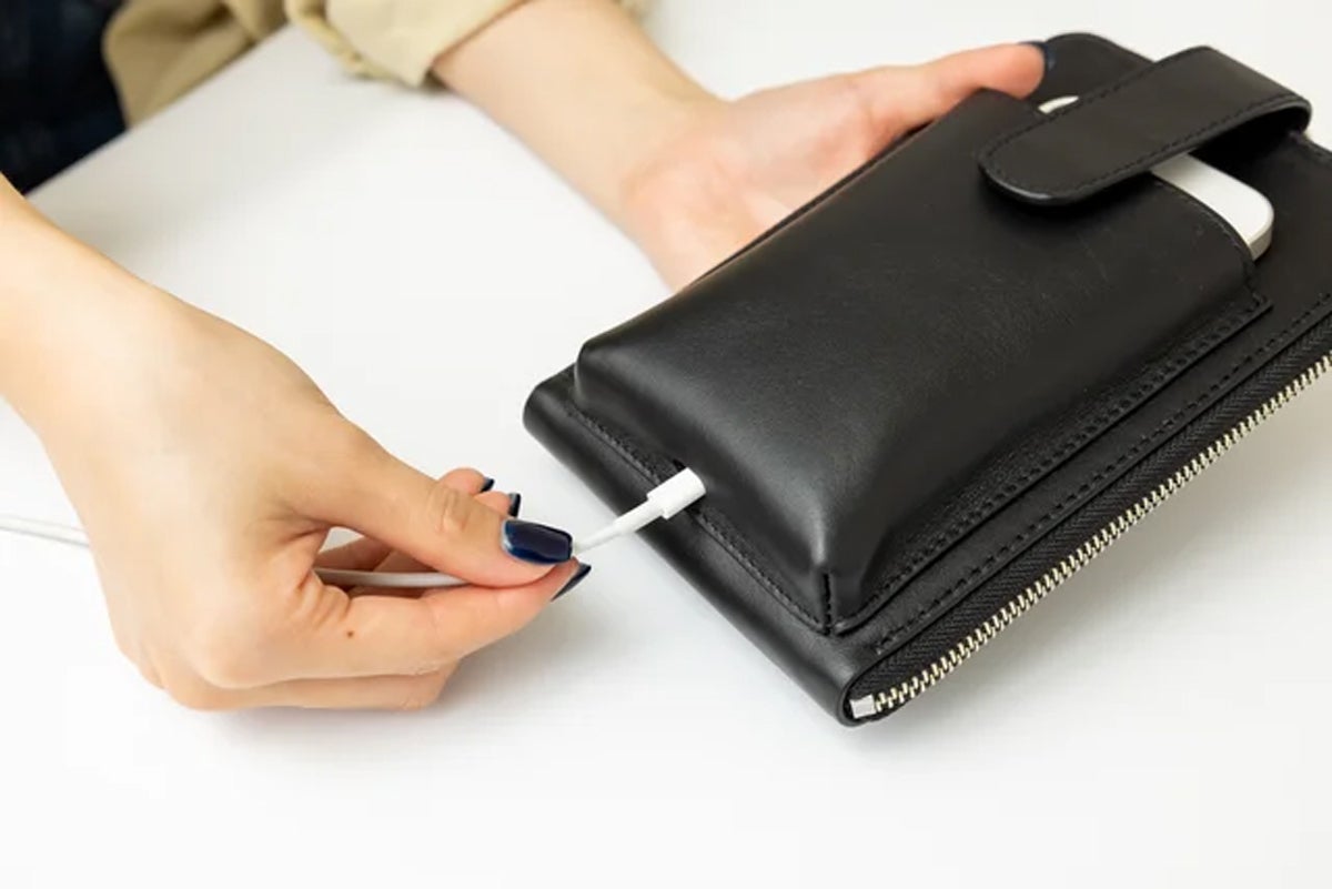 スマホをポーチに入れた状態で充電コードを差し込める「差し込み口」装備