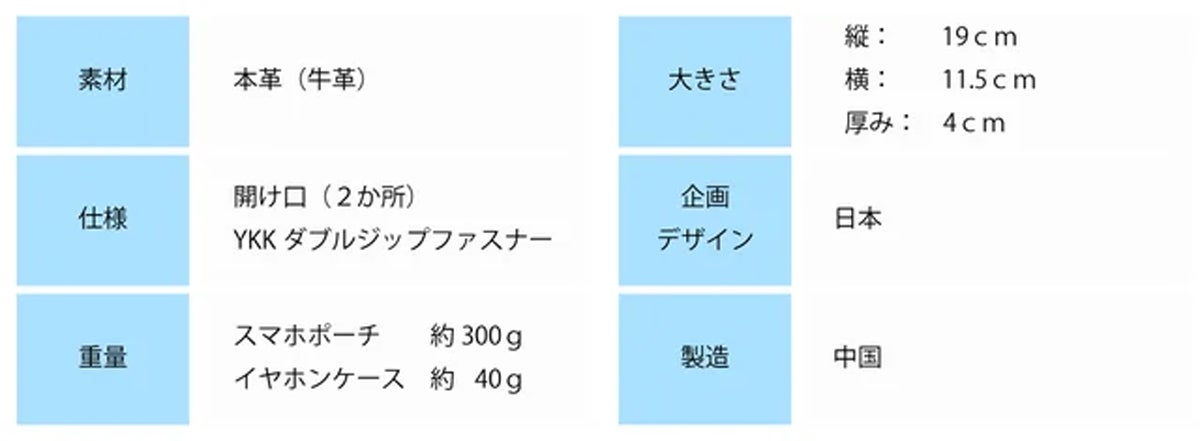 A:スマホポーチ約300g イヤホンケース40gです。