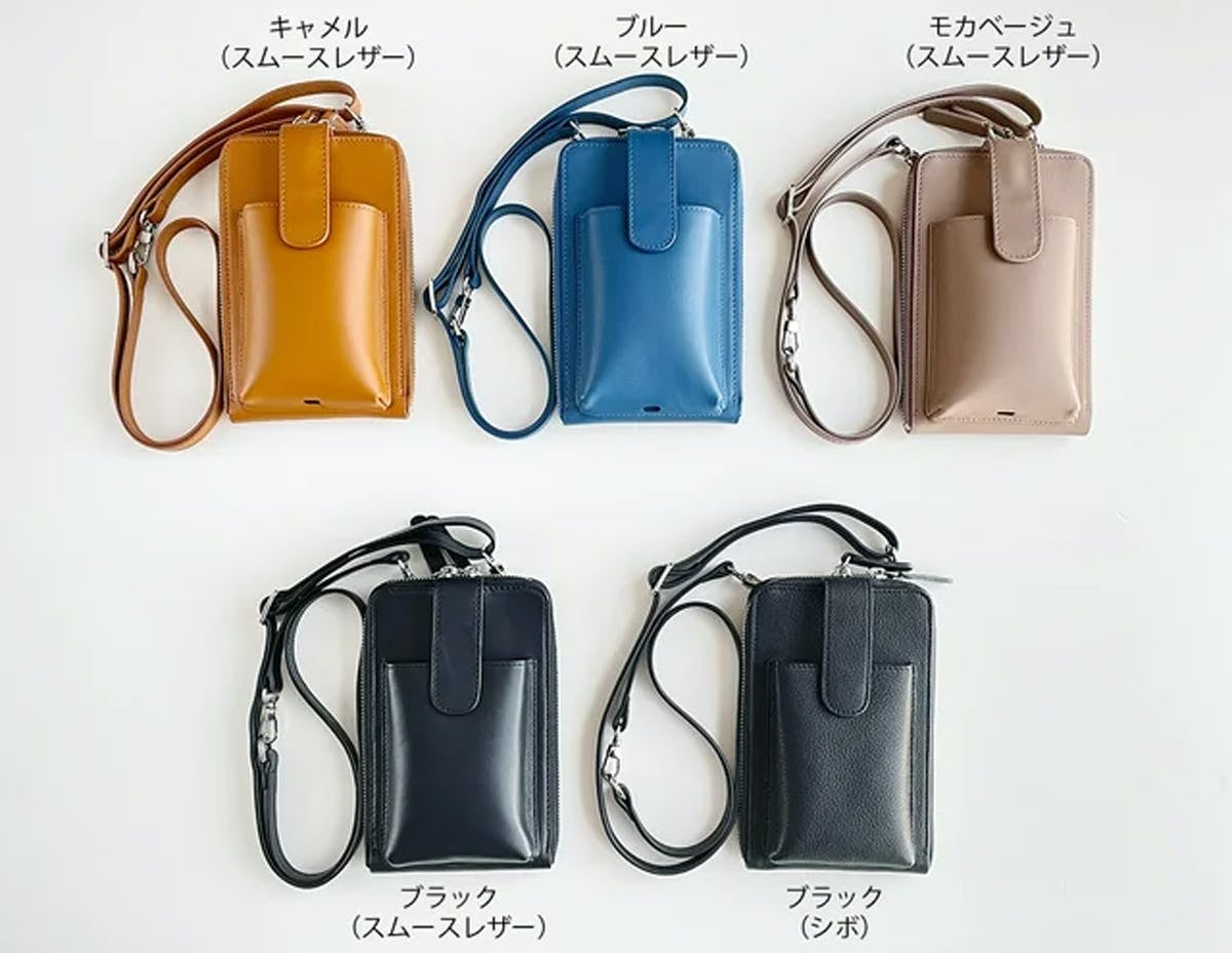 ※キャメル、ブルー、モカベージュは少し光沢のあるスムースレザーです!