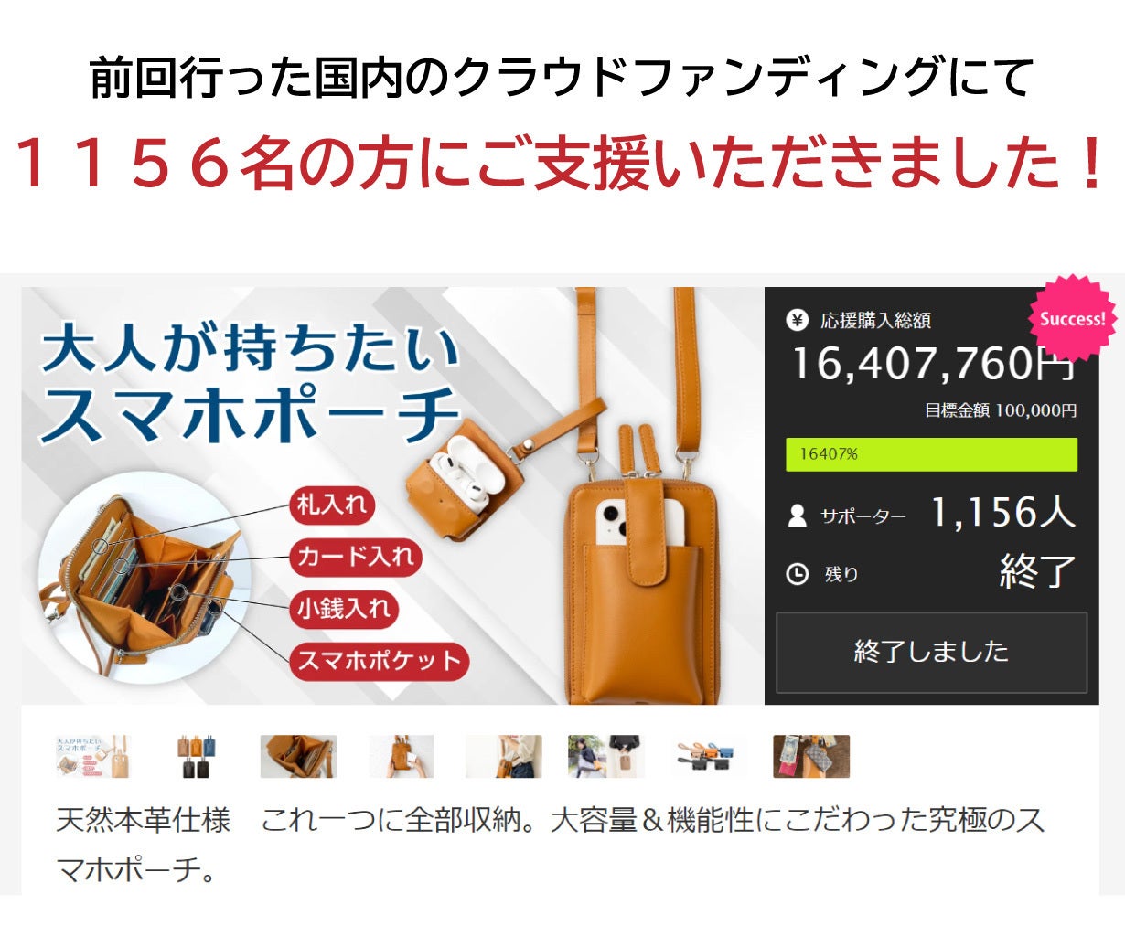 【大人が持ちたいスマホポーチ】を製作するにあたって高級感を追求したいと思っていました。この為、革の素材にはこだわりました。