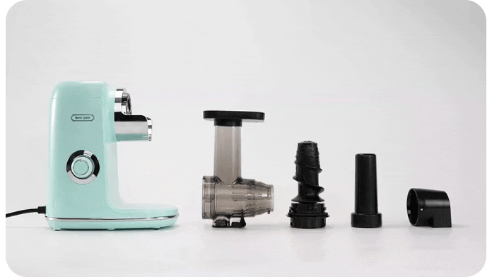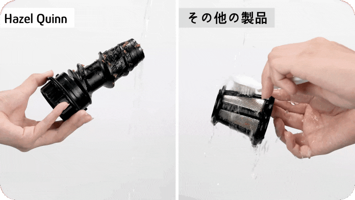 従来のスロージューサーでは、設置に回転や複数箇所のドッキングが必要でしたが、ハズキーンでは水平挿入とワンタッチ設置により、操作がもっと簡単になって、汁漏れや電気などの異常がなく、安全性が向上しています。 また、4つのジューサー部品をすべて縦に置くことができるため、素早く乾燥させることができ、収納もしやすくなっています。 Hazel Quinnのイノベーションを体験したユーザーは、もう他のジュースの作り方を必要としなくなることでしょう