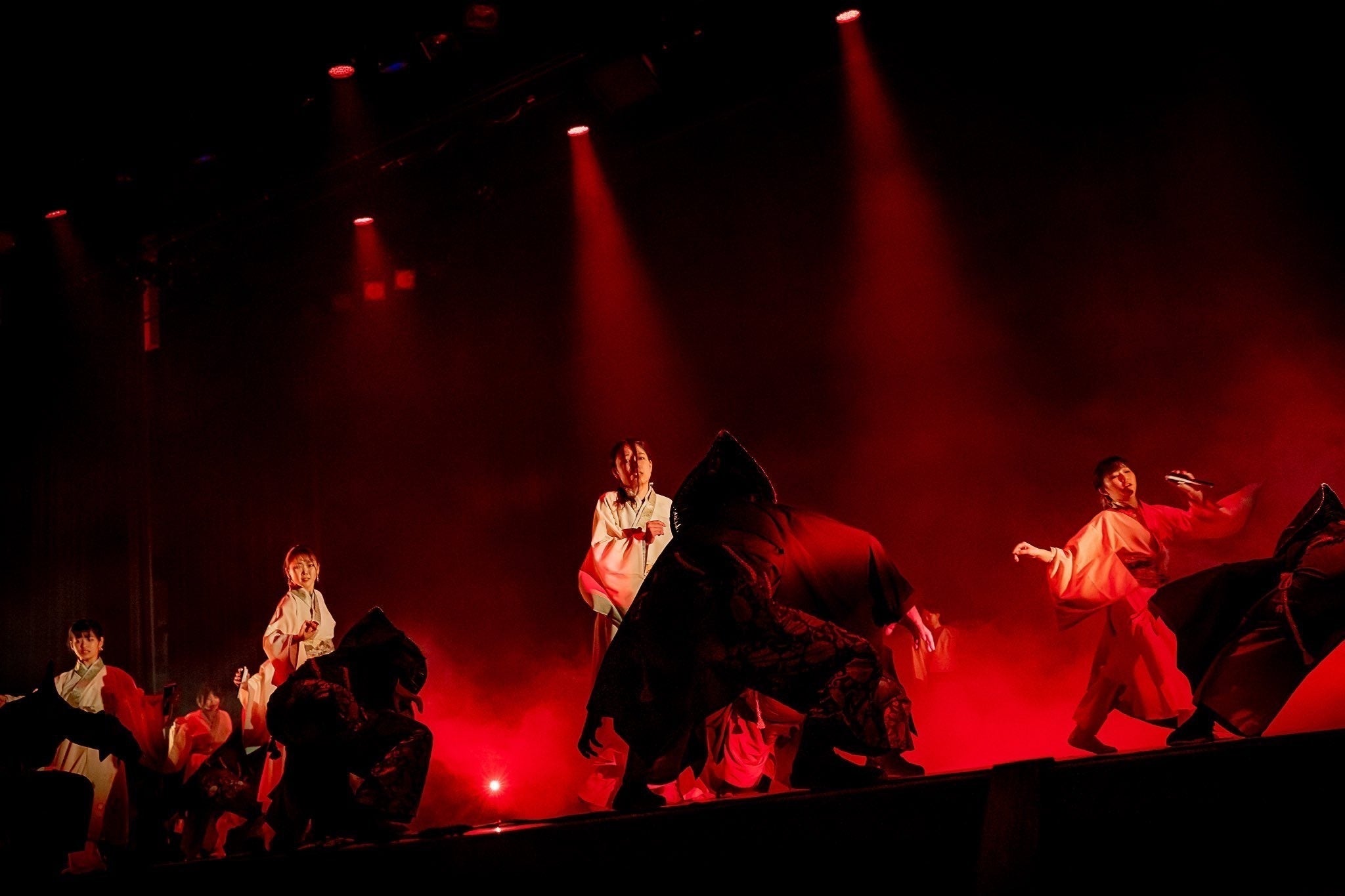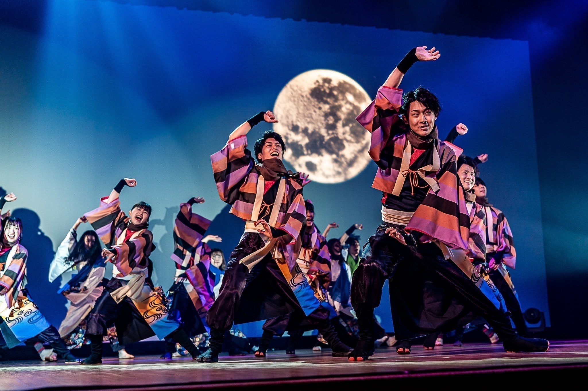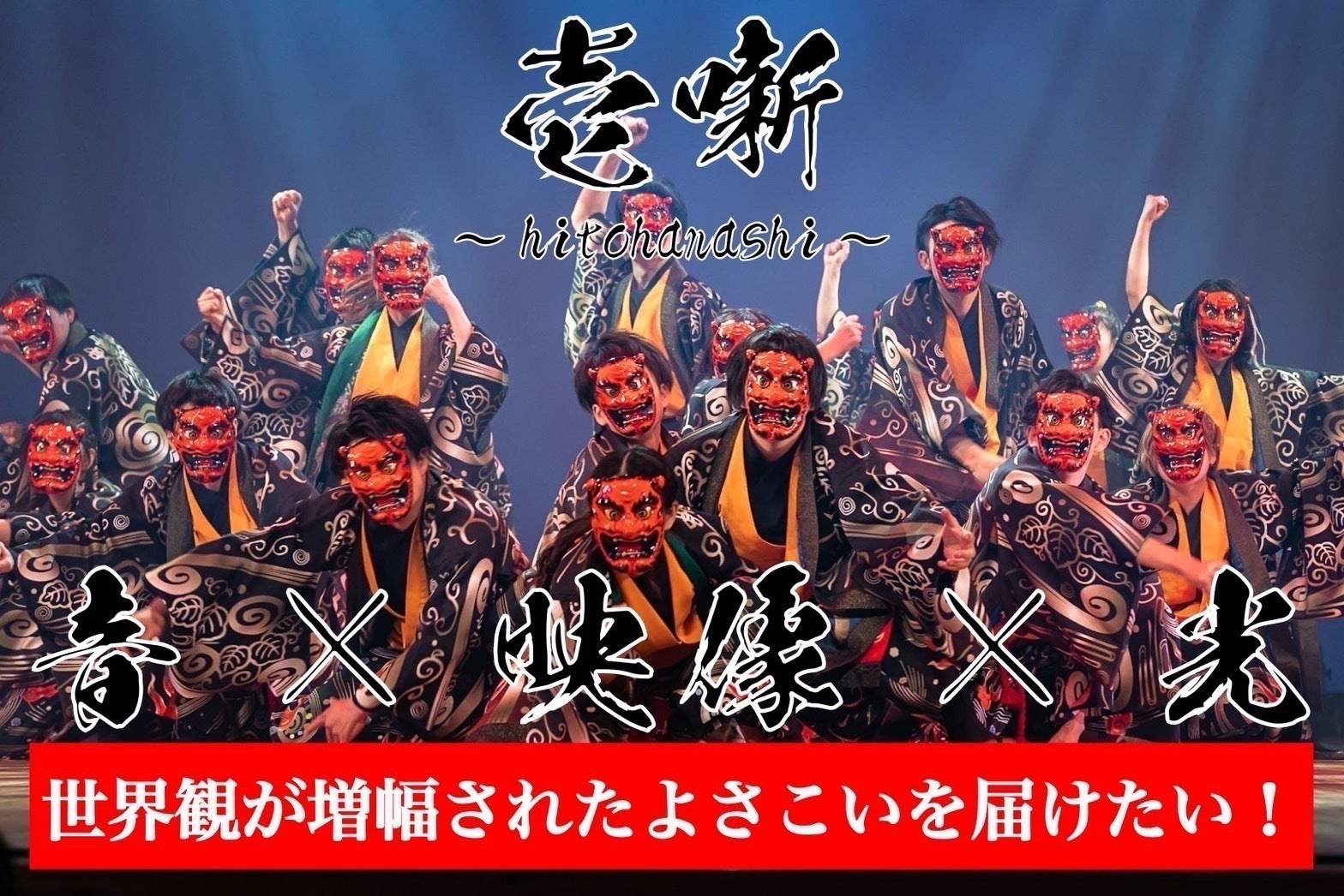 現在のよさこいは様々なチームや祭りが存在し、多種多様な広がりを見せています。一般的に街中を会場とし、ステージ形式や練り歩き形式で演舞を披露してお祭りを盛り上げています。しかし、演出に関しては音・光・映像等が連動する舞台に特化したよさこいの演出は全国的に見ても多くありません。