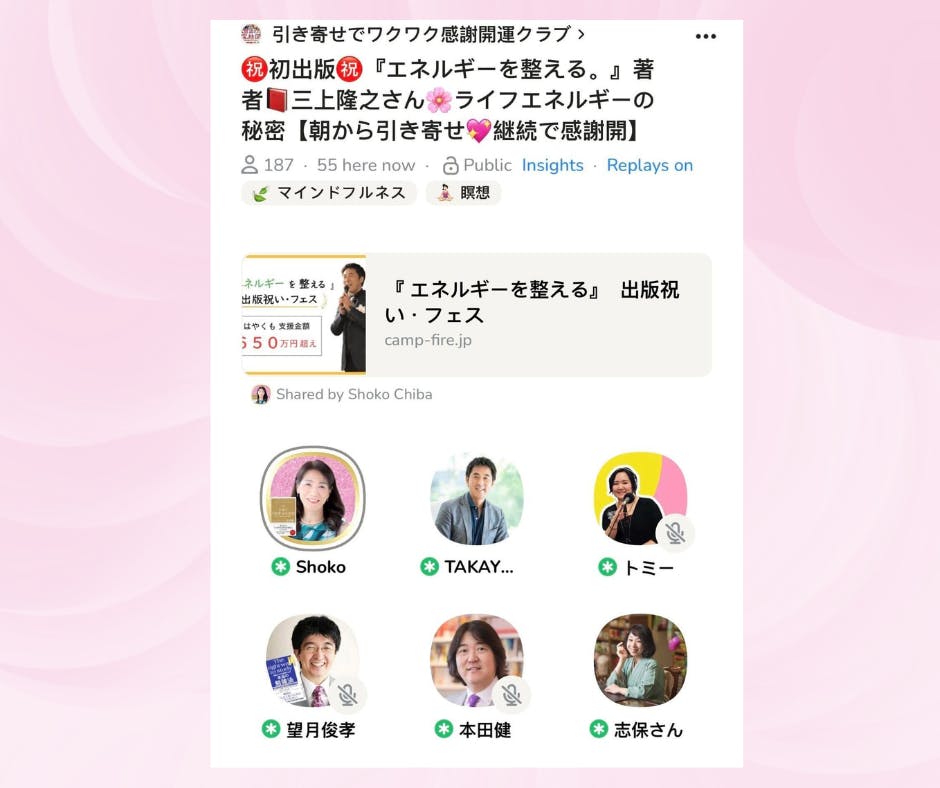 千葉祥子さんの「朝から引き寄せ」のクラブハウスにゲスト出演させていただきました!
