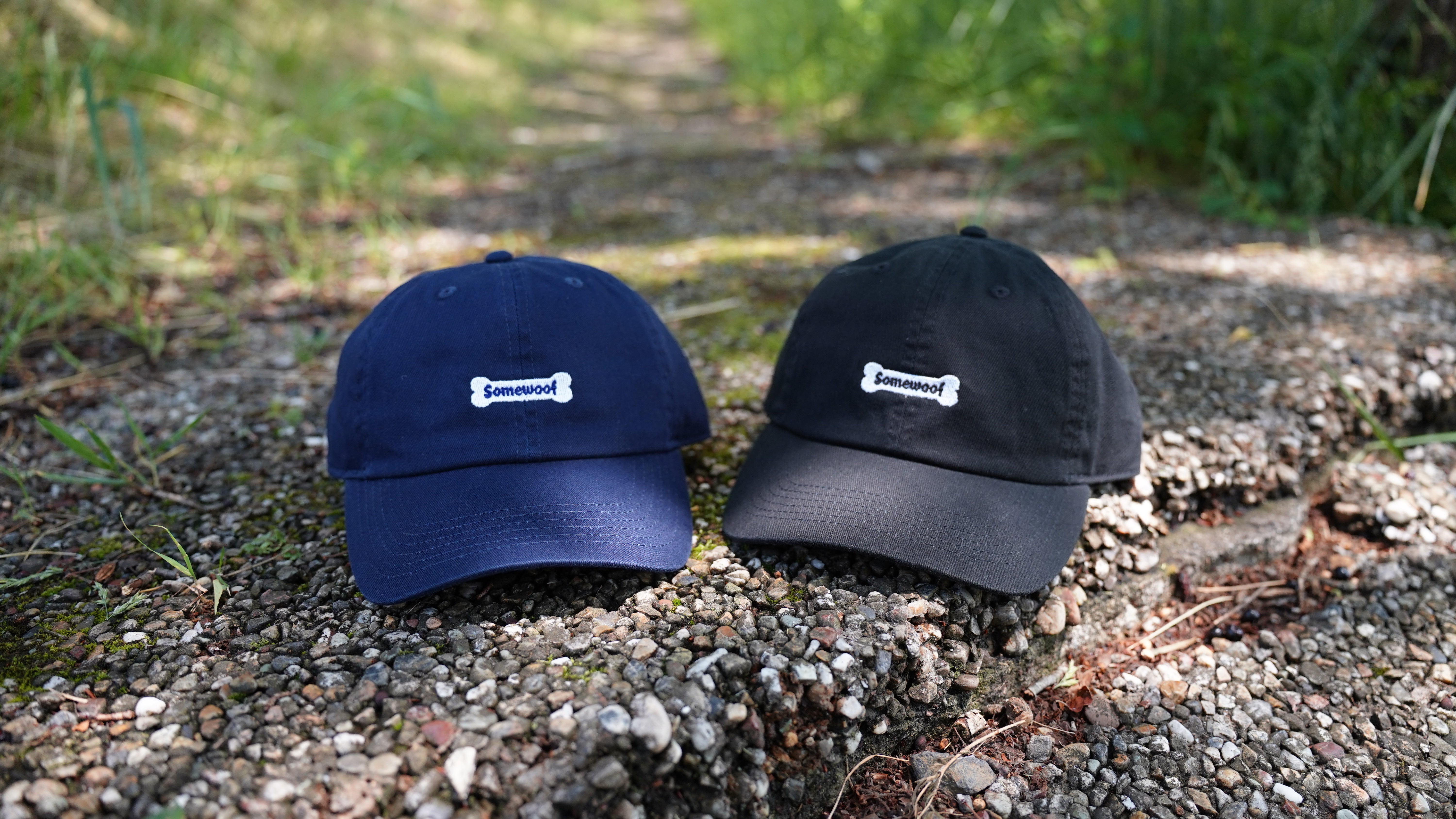 "Somewoof"のロゴデザインを刺繍したローキャップです。