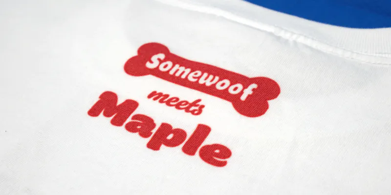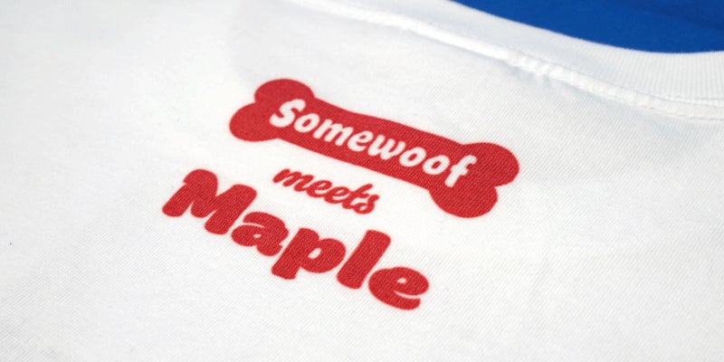 裏面首周りには、"Somewoof meets Maple"という、ブランドロゴと"メイプル"という一匹の犬を記念したデザインを施しています。