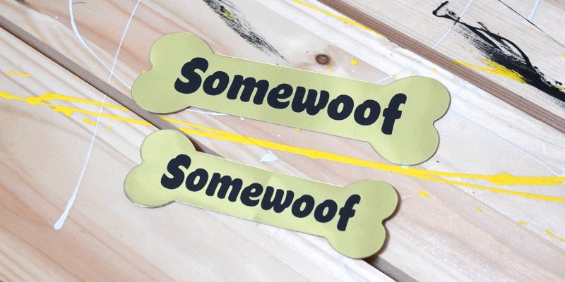金色に輝くSomewoofのブランドロゴステッカーセットです。