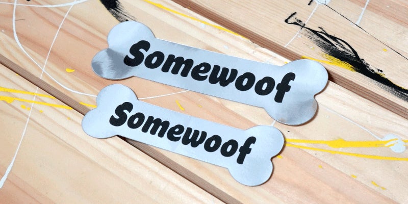 銀色に輝くSomewoofのブランドロゴステッカーセットです。