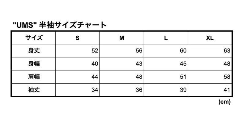 サイズ感は、このTシャツだけ他のものとは異なる下記表の採寸になります!