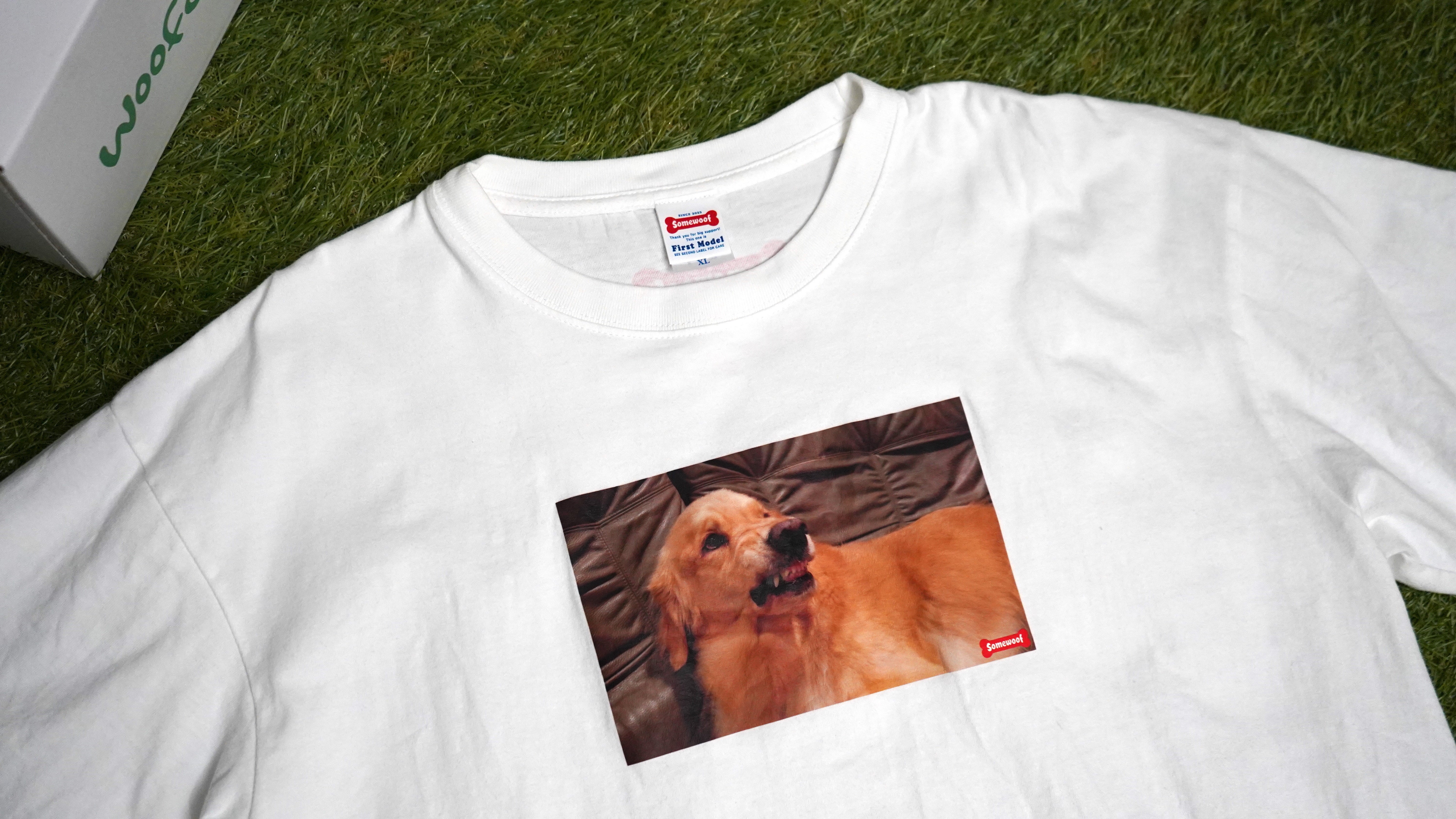 YouTubeでも大好評だった写真を思い出の品として、"Somewoof"第一号のフォトTシャツとして販売します。