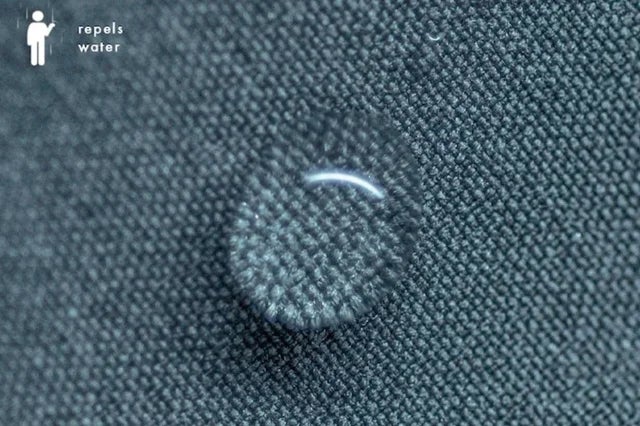PFCフリー撥水剤を塗布して生地の繊維を強化しているので、水や汚れを弾きます。霧雨や台所の水はね等も滑らせて寄せ付けません。