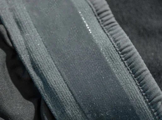 パンツとの唯一の違いは、袖口のアジャスターの代わりに滑り止めバンドを追加している事です。見た目と穿き心地をよくするために加えています。