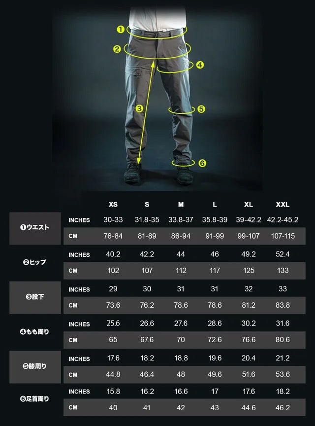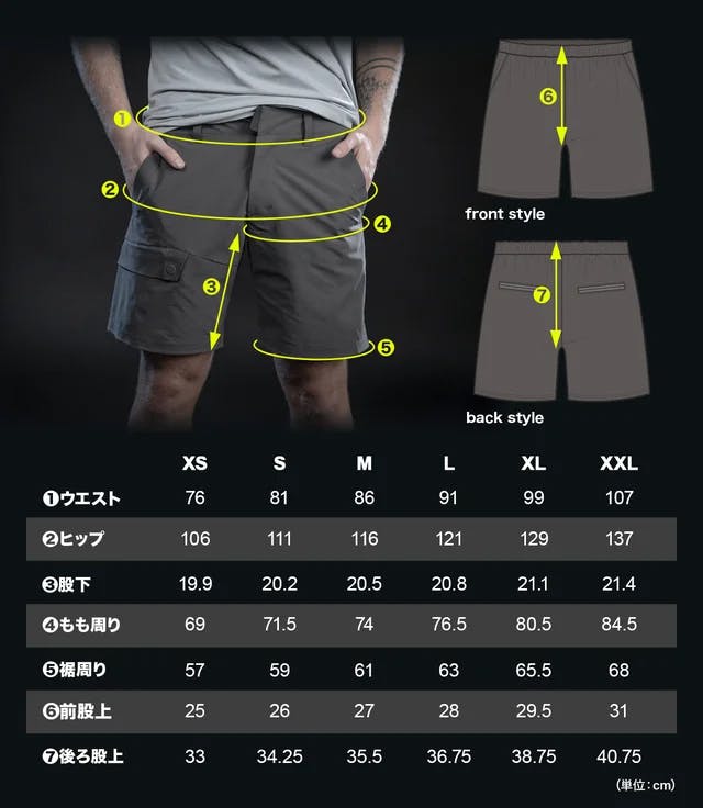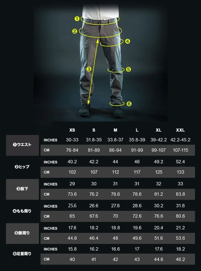 1度までサイズ交換が無料となっております。下記の数値はパンツを実寸した長さです(体を採寸した長さではないことにご留意ください)。