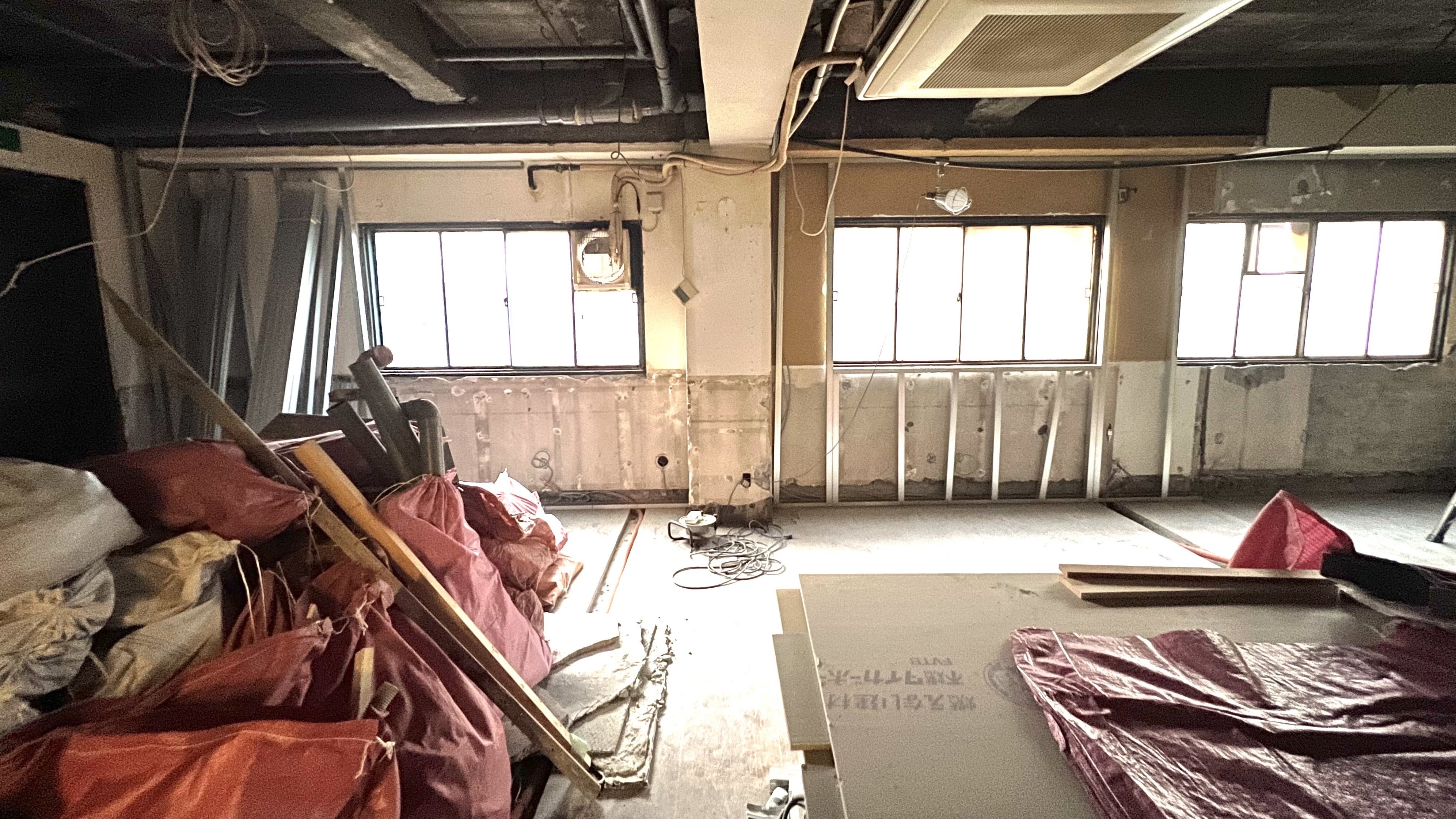 現状の内装は以下の状態です。ここからタフティングスタジオに変身させるべく、内装工事を重ねております!!
