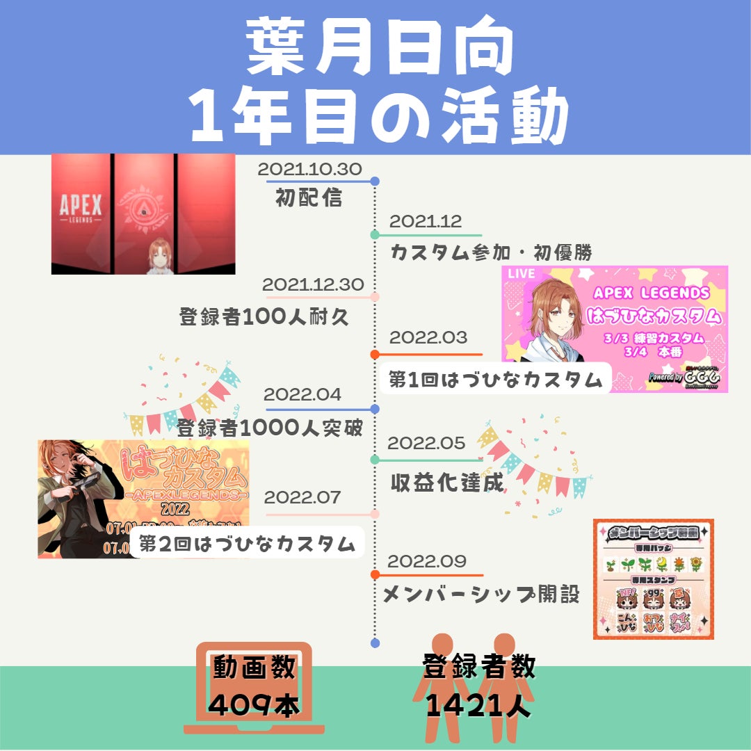 APEXやVALORANTの参加型を通じて、登録者が着々と増えて、有り難いことにデビュー半年以内に