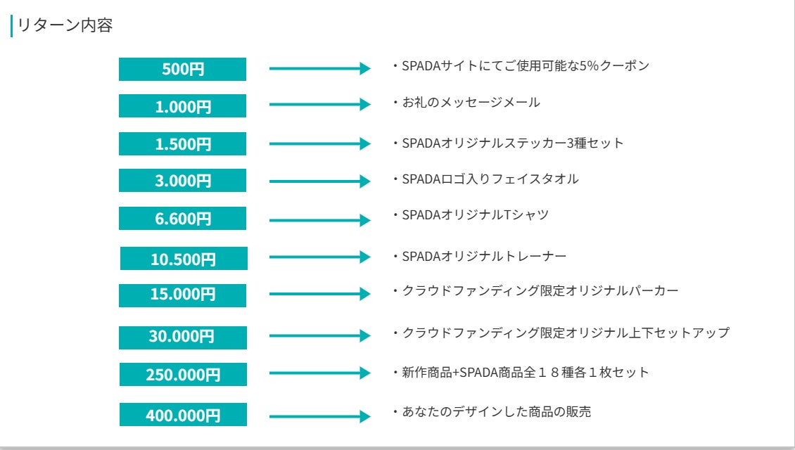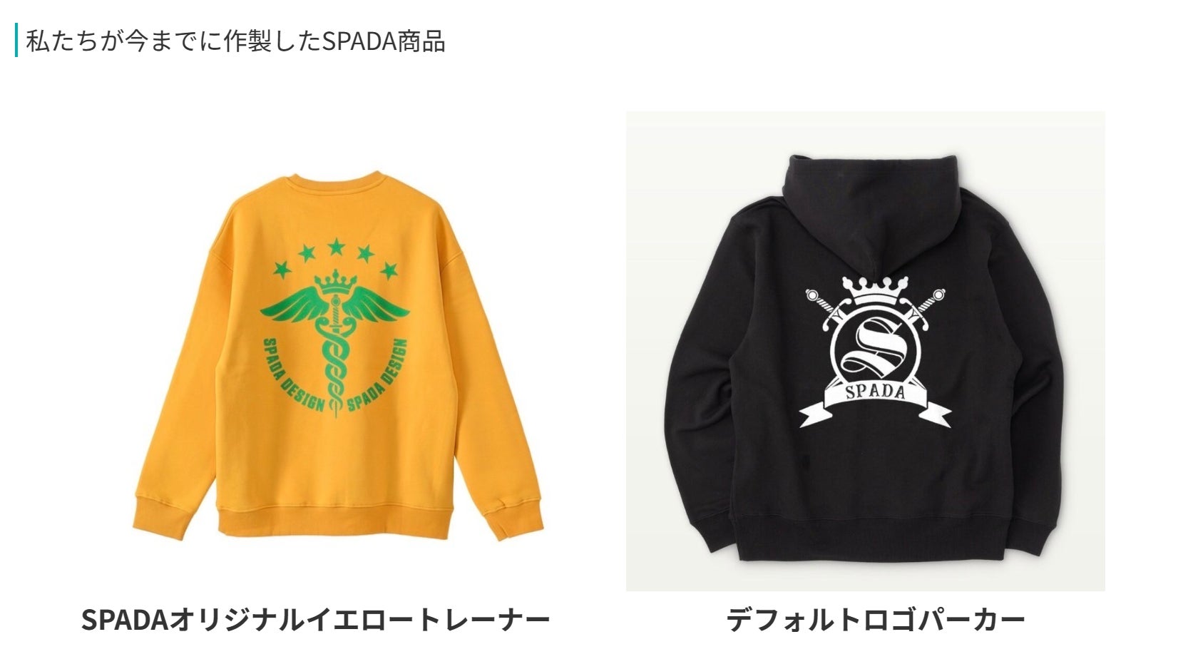 一緒に達成感とSPADA商品の最高な服を是非とも味わって貰いたいと思っております。