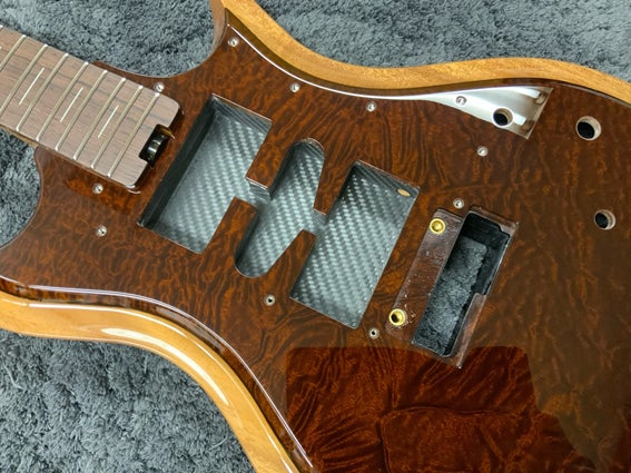 Full Barrier効果が最大限引き出せるように、試作機のデータを基にピックアップキャビティを設計。内側にはCFRPを一枚一枚手作業で貼り合わせ、導通処理を行っています。