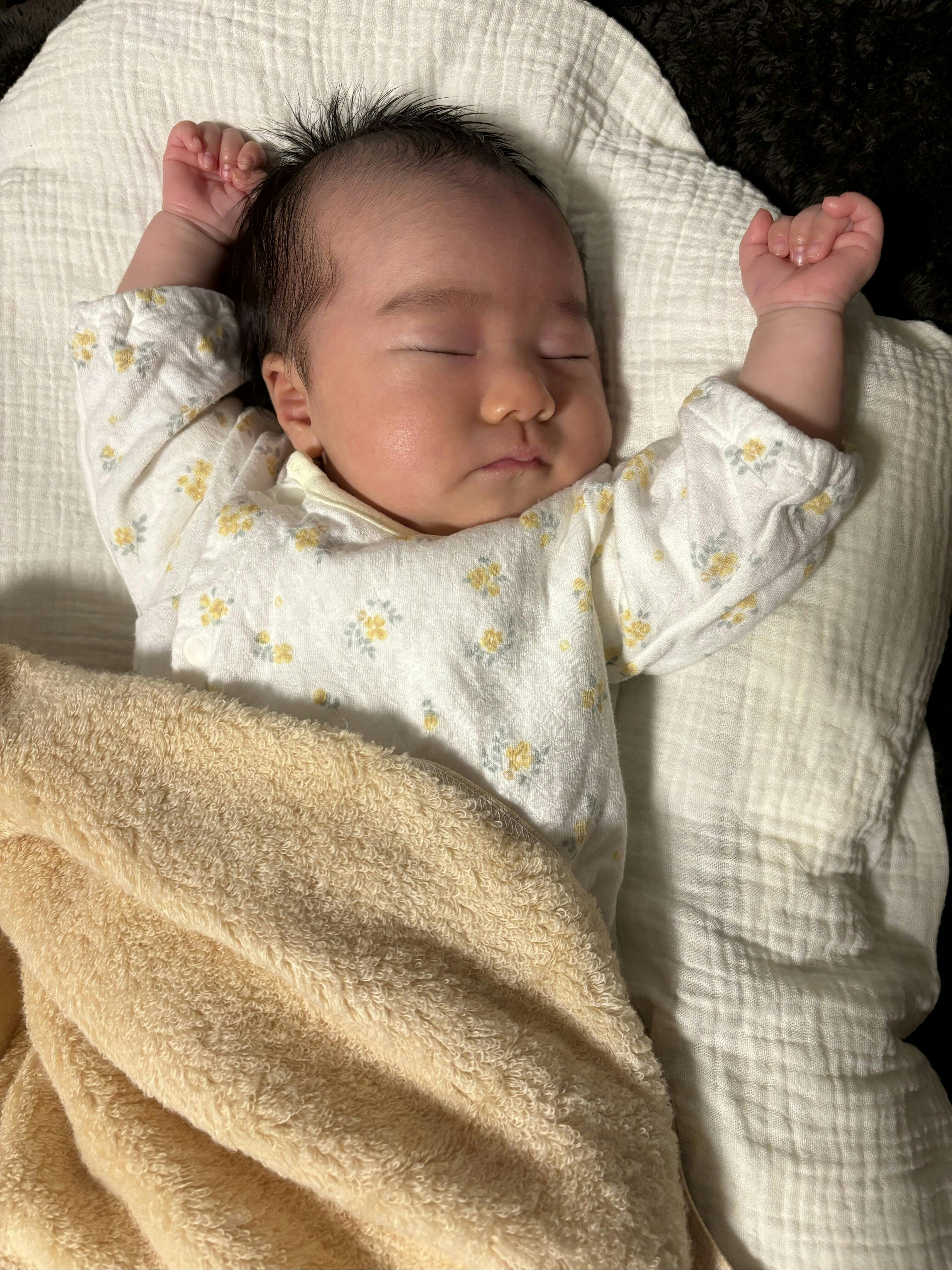 帰ってからなかなか寝付けなかったのですがこのタオルを巻いたとたん、ころりとぐっすり眠ってしまっのです。なぜならこのふわふわ感はとっても安心します。安心するふわふわ感でもあり、実はお母さんのおなかにいた頃の温もりと近しいようで今もなお使ってくれてるそうです。