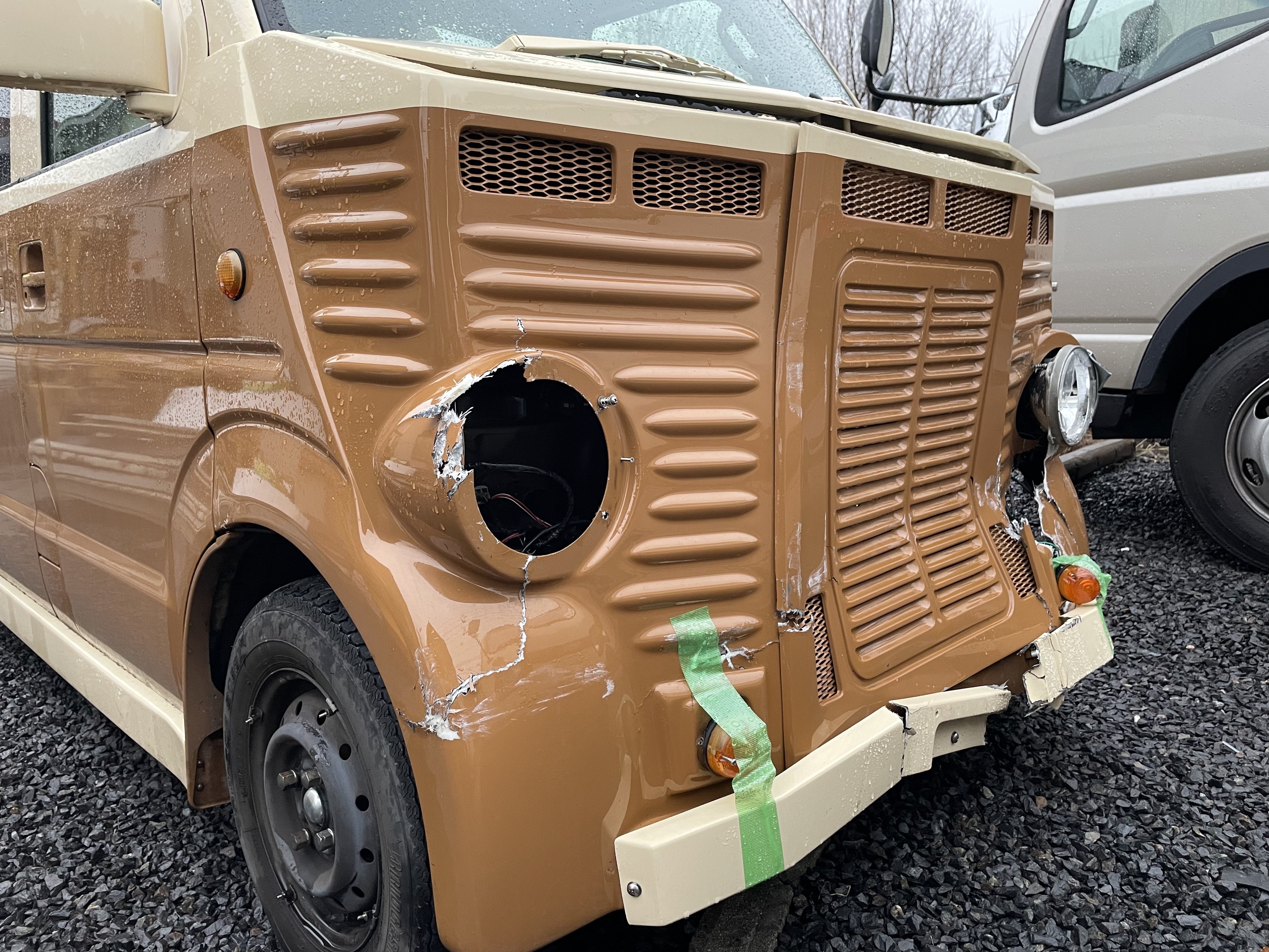 この車は唯一無二のキッチンカーです。なんとか修理してもう一度出店したいと思っております。
