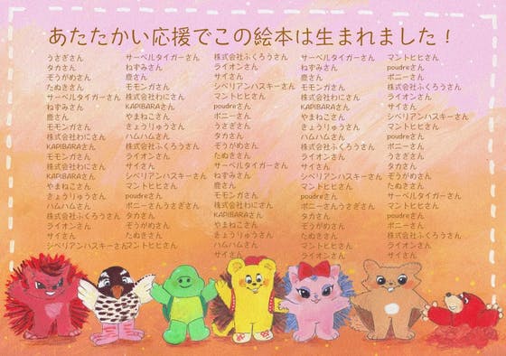 ご賛同頂いた、全ての方のお名前(ニックネーム)・会社名を、絵本のクレジット文面に掲載させて頂きます。