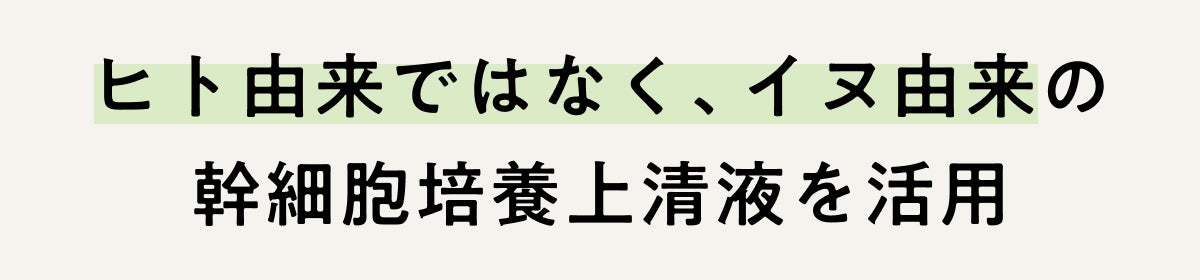 ● 原材料名:水・イヌ間葉系幹細胞培 養上清液・グリセリン・BG・ペン チレングリコール・ベタイン・ス クワラン・セラミド
