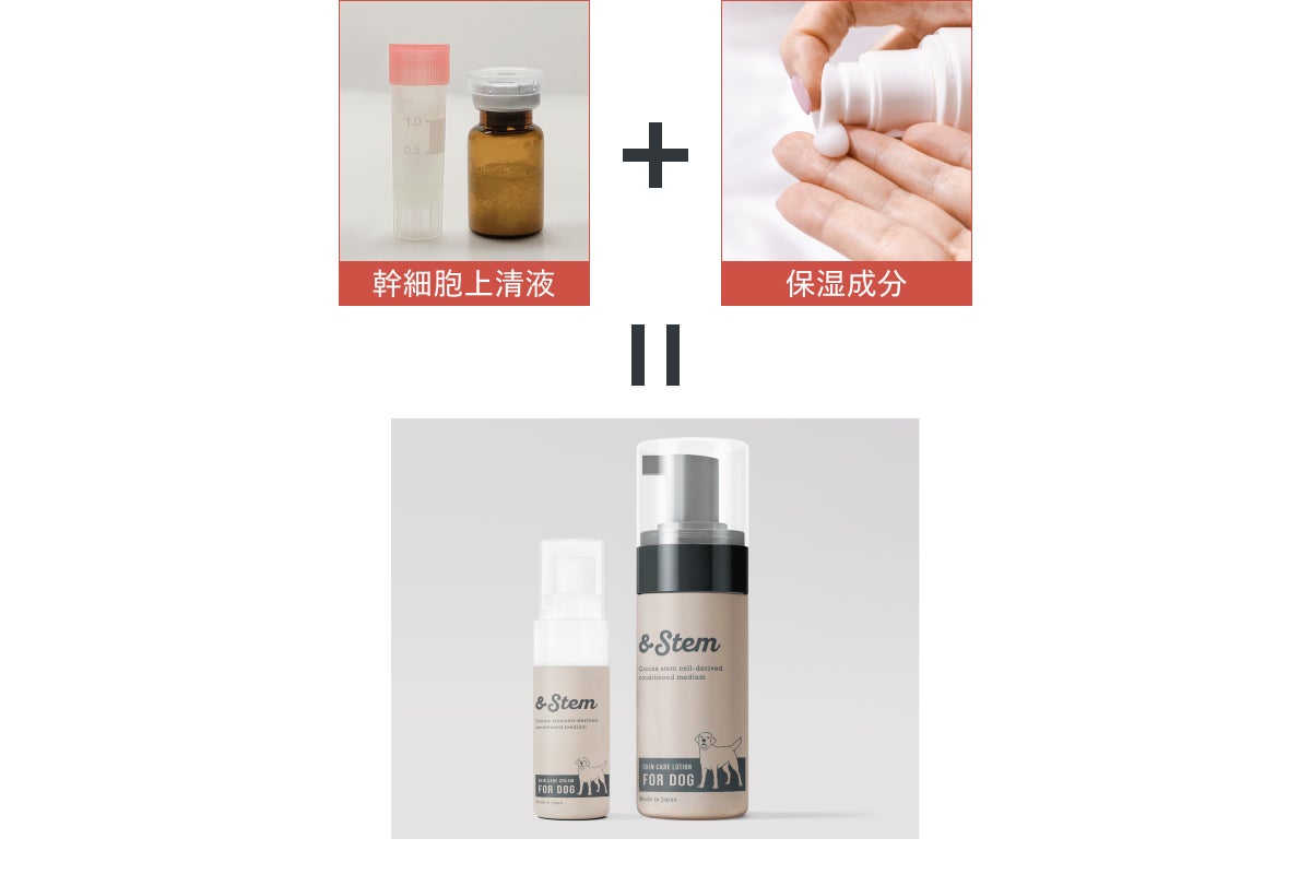 私たちは「世界中のペットを皮膚の悩みから解放したい」という思いのもと、獣医療の最前線でワンちゃんと向き合っている、救急医療専門医、皮膚科医とともに製品開発に取り組んでいます。そして、再生医療分野の「幹細胞」から得られる「イヌ幹細胞培養上清液」を活用し、乾燥などのトラブルを起こしがちなワンちゃんに向けたスキンケアクリームとホームケアが容易な泡タイプのローションの開発をスタートします。