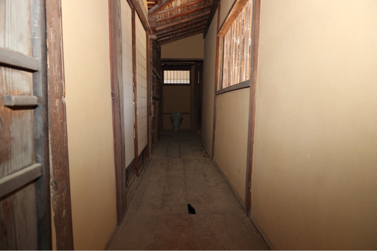 廊下部分に穴が空いており、人が歩くには危険な状態です。