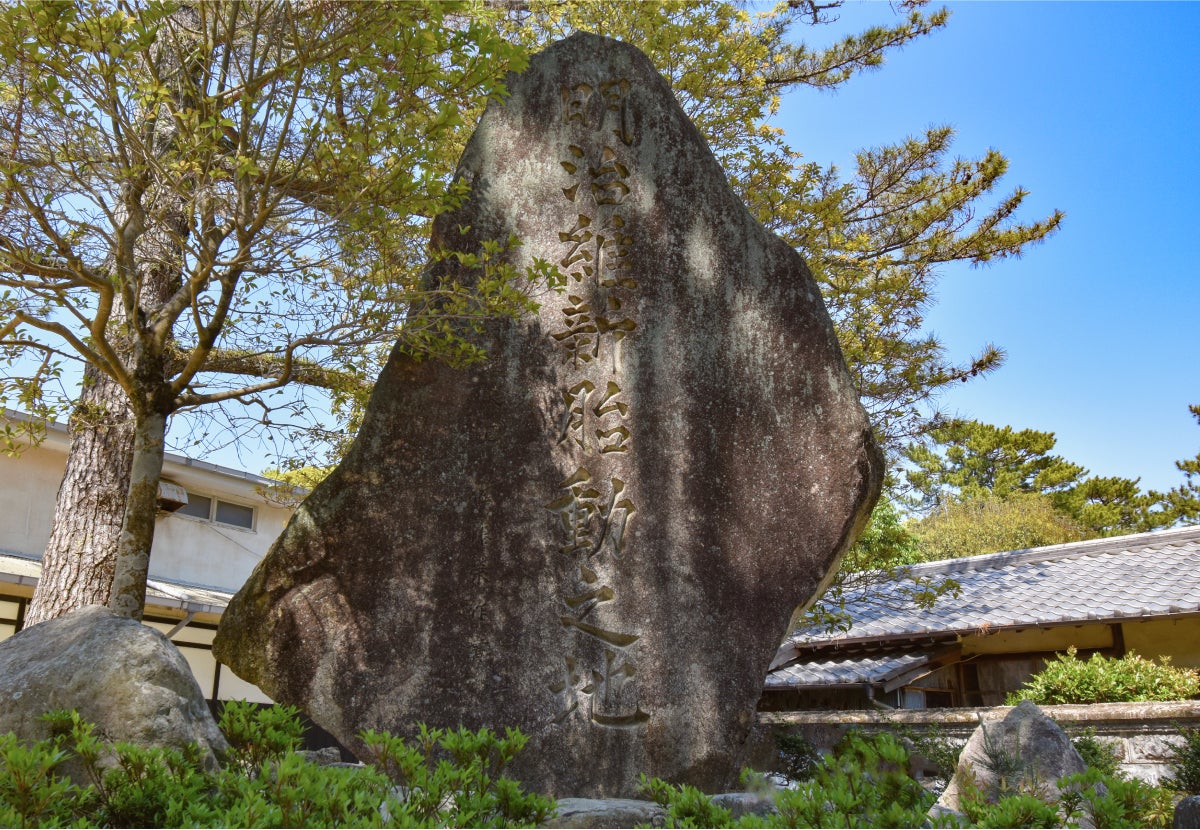 昭和43年(1968)、明治維新100年を記念して建立された石碑「明治維新胎動之地」。この字は、当時の内閣総理大臣 佐藤栄作元首相 によって書かれたものです。