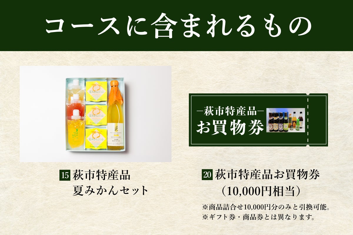 このコースには萩市特産品と引き換えられるお買物券付きで、交換できる商品は↓のみです。