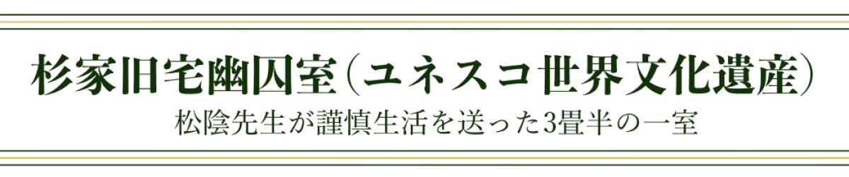 世界遺産「吉田松陰幽囚ノ旧宅」の中に入場して神職がご案内いたします。通常は立ち入り禁止となっており、貴重な体験をしていただけます。