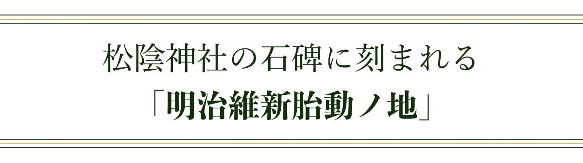昭和43年(1968)、明治維新100年を記念して建立された石碑「明治維新胎動之地」。この字は、当時の内閣総理大臣 佐藤栄作元首相 によって書かれたものです。