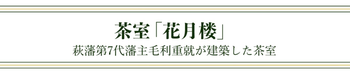 松陰神社境内にある江戸時代の茶室「花月楼」。松下村塾出身の品川弥二郎が、これを建設した萩藩第7代藩主毛利重就の遺徳を偲び自邸内に保存していたのを、昭和34年(1959)に神社境内へと移築したものです。
