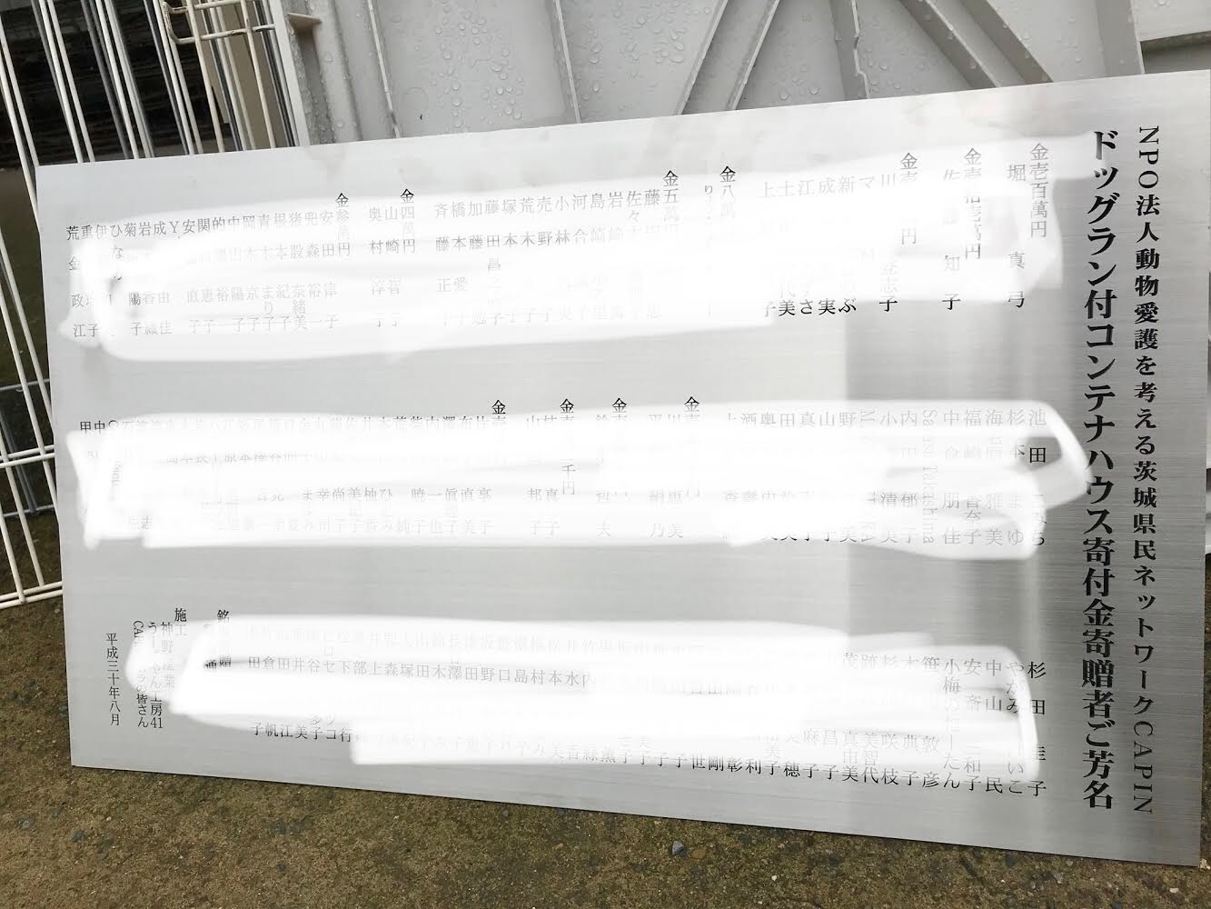 ドッグラン付きコンテナハウスを建設するためのクラウドファンディングへのご協力を頂きまして誠にありがとうございました。たくさんのご寄付をお寄せ頂き、心より感謝を申し上げます。ご報告が遅れ、申し訳ございませんでした。感謝とともにご報告をさせていただきます。なお、1万円以上のご寄付をくださった方は、ドッグラン(またはコンテナハウス)に掲げる設立者銘板にお名前を記載させて頂きました。●クラウドファンディングで集まった額:<収入>2880140円(207人、3349000円に14%手数料を引いた額となります。目標金額の4割も集まりました。ありがとうございます。)●「ドッグランに役立てて欲しい」と、手渡しでご寄付頂いた分、振込み分をこれに合計しますと4,193,140円となります。<支出>●2018年6月26日時点での支出総額:3,357,901円内訳:2,590,013 コンテナ、フェンス、アンカー、パネル、床材、ペンキほか45860 二重扉51200 エアコン(常総シェルター)300000 ドッグラン建設費(材料込み)2784 蝶番68044 常総シェルター犬舎脱走防止●その後の支出(2018年12月末までの支出)901,046円内訳:ドッグラン工事、パーテーション、ビニールスプリング、仕切り <支出合計>3,357,901円+901,046円=4,258,947円<収支>4,193,140-4,258,947=△65,807円<65,807円ほど足りませんでしたが、当初予定部分のドッグランは完了致しました。>********************・ドッグラン(大)、ドッグラン(小)完成。・コンテナの入口前(通路)に屋根をつける作業完成・コンテナ内部の部屋分けのためのパーテーション、床完成。皆様からの大切なお金をお預かりしていることを忘れずに、節約を心がけながら、保護犬のエアコン付きコンテナとドッグランを作って参りました。フェンスはイノシシ除けの安いネットを特注しました。なるべく経費を抑え、新品でなくご寄付や廃材を利用しました。コンテナ内部の作業は、ボランティアさんにより助けられました。お忙しいなか、ほんとうにありがとうございます。新常総シェルターの施設の脱走防止策も実現し、コンテナにエアコンを付けることも叶いました。皆様のご支援のおかげで、飼養環境もまた一歩前に進みました。ありがとうございました。ご報告が遅れて申し訳ございませんでした。新しいニュースレターとともに、会計の明細含め、詳しいご報告を文書で郵送させて頂きます。今年になって茨城県の殺処分をゼロにする目的で、新たに「ストップ殺処分@茨城県動物指導センター」に取り組んで参りましたため、新たなコンテハウスの設置、新たな緊急保護シェルターの土地と建物の準備が必要となり、苦難しつつ保護活動を進めております。今年になって156頭の犬を引き出し、飼養を行っております。更なるご支援を賜りますようお願い申します。CAPIN代表 鶴田真子美