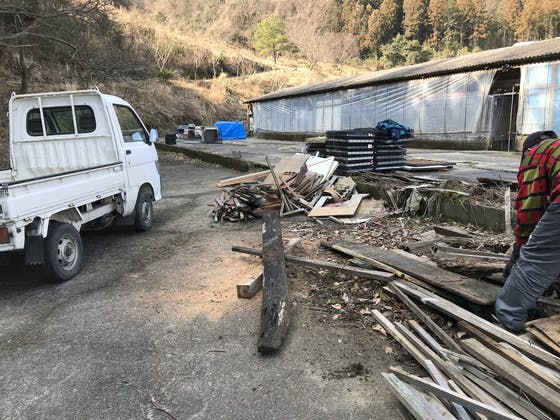 また、保護犬たちを入れるコンテナハウスを置く場所(犬舎の裏側にあるコンクリート敷のスペース、竹林に囲まれています)をきれいにするため、ボランティアさんに頼み、積み上げてあった廃材などをどかしてもらいました。木材は切断して五右衛門風呂の燃料にしました。