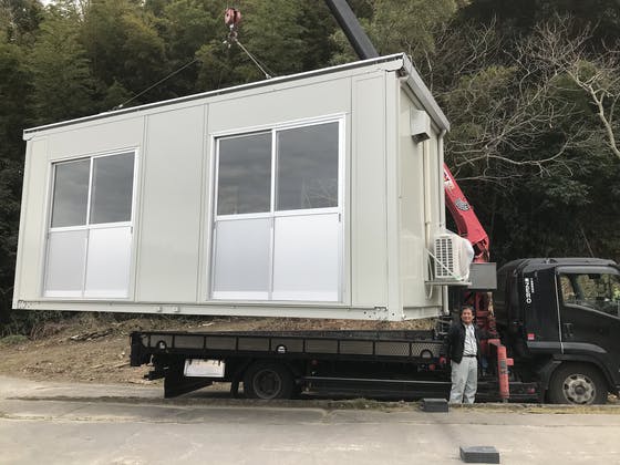 コンテナハウス16畳(横並びの妻連棟)とコンテナハウス8畳の設置を行いました。