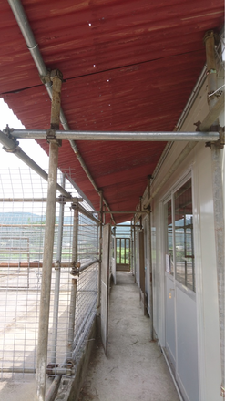 まず、コンテナハウスの出入り口に屋根を付けて頂きました。